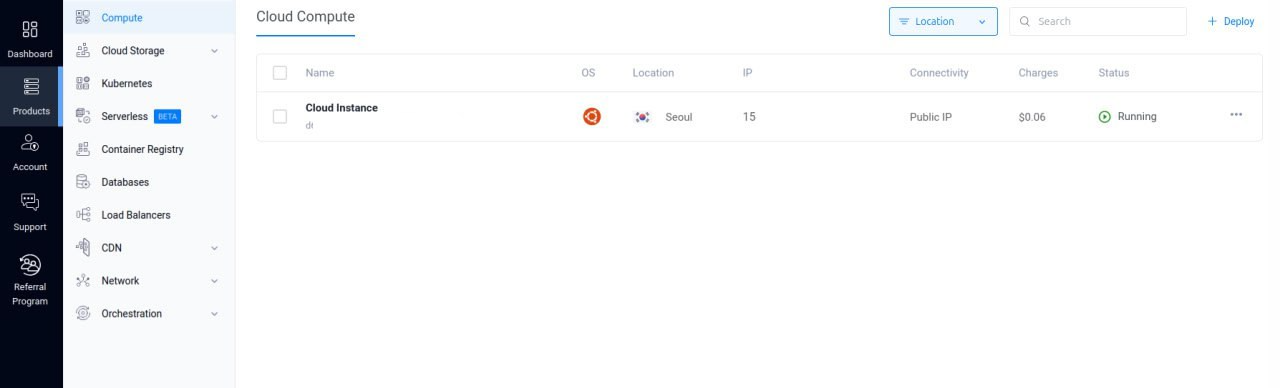 이해하길 바란다.  Cloud Insrance 를 클릭하면 리눅스 서버에 접속할 수 있는