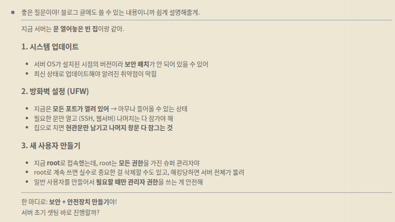 서버 초기 설정 완료.  라고 하지만, 한번더 보안에 대해서 질문하기!!