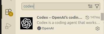 검색창에 **”Codex”**를 입력하면 OpenAI Codex가 나온다.